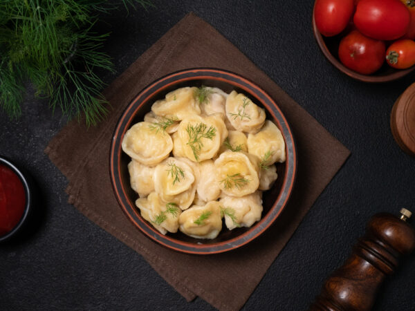 Chicken and pork pelmeni (dumplings)